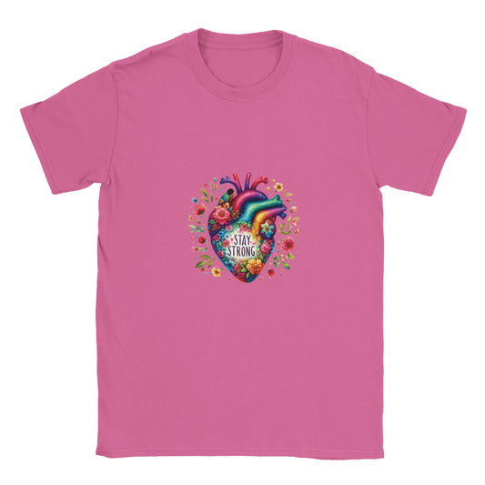 Stay Strong Colourful Heart Design T-Shirt, Heart with flowers – Soft Feel Classic Design